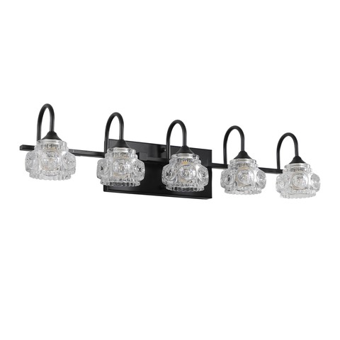 Product Name: 29" Retro 5-Light Bathroom Vanity Light Fixture - Black Finish with Crystal Glass Shades